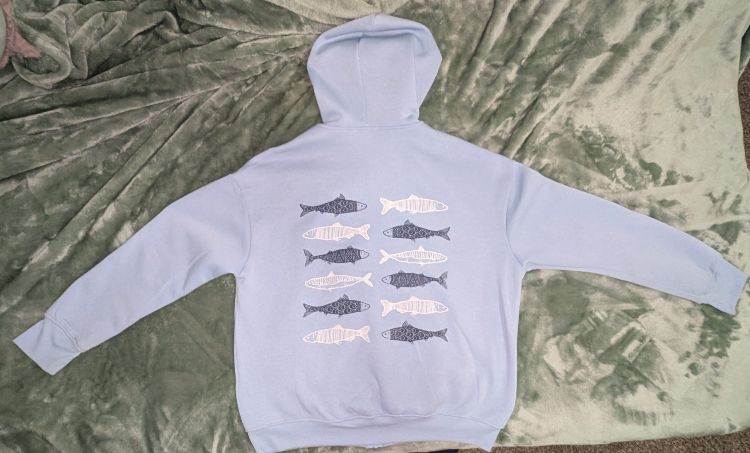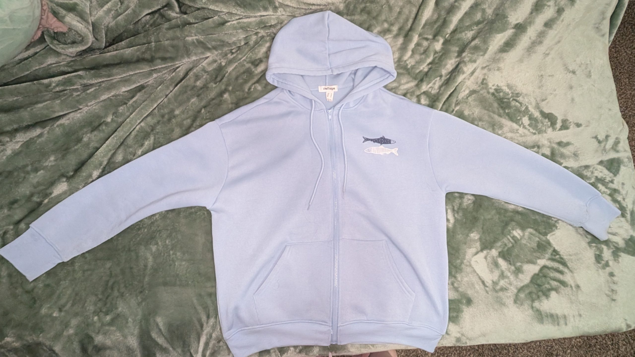 Cute light blue fish patterned zip-up. Great to wear to an aquarium!